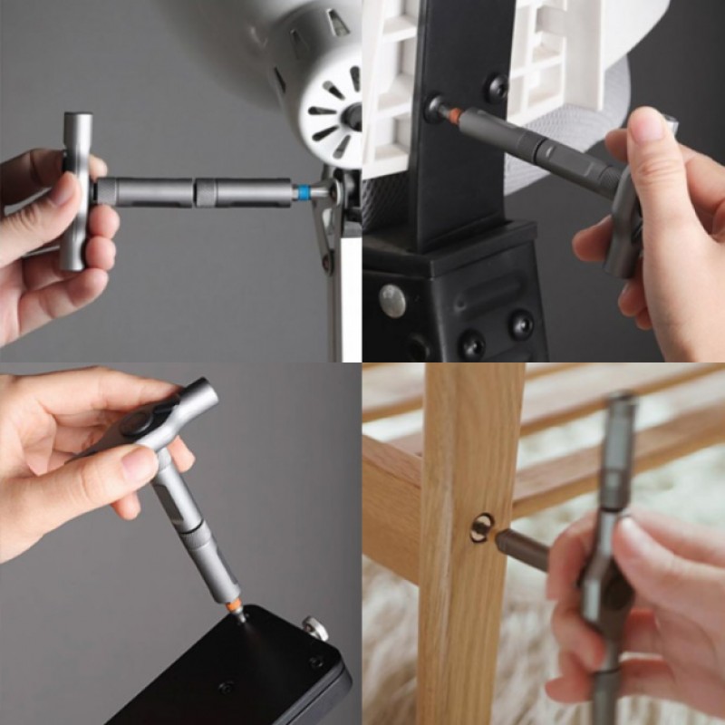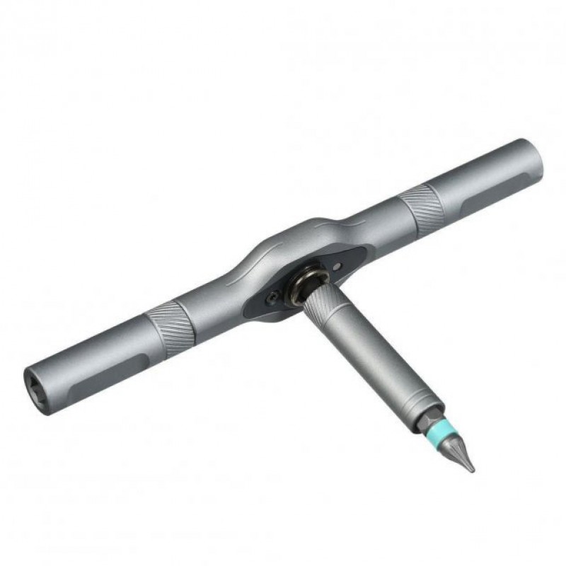 Битодержатель оснащен храповым механизмом с 58 зубцами, благодаря которому отвертку можно использовать по типу гаечного ключа: вращает в одном направлении и не позволяет вращаться в другом. Кроме оригинальной конструкции, инженеры создали набор еще и чрезвычайно практичным. Этот набор подойдет для десятков различных заданий: подтянуть петли на двери, подкрутить расшатавшийся винт на стуле, закрутить потуже ручку на шкафу.