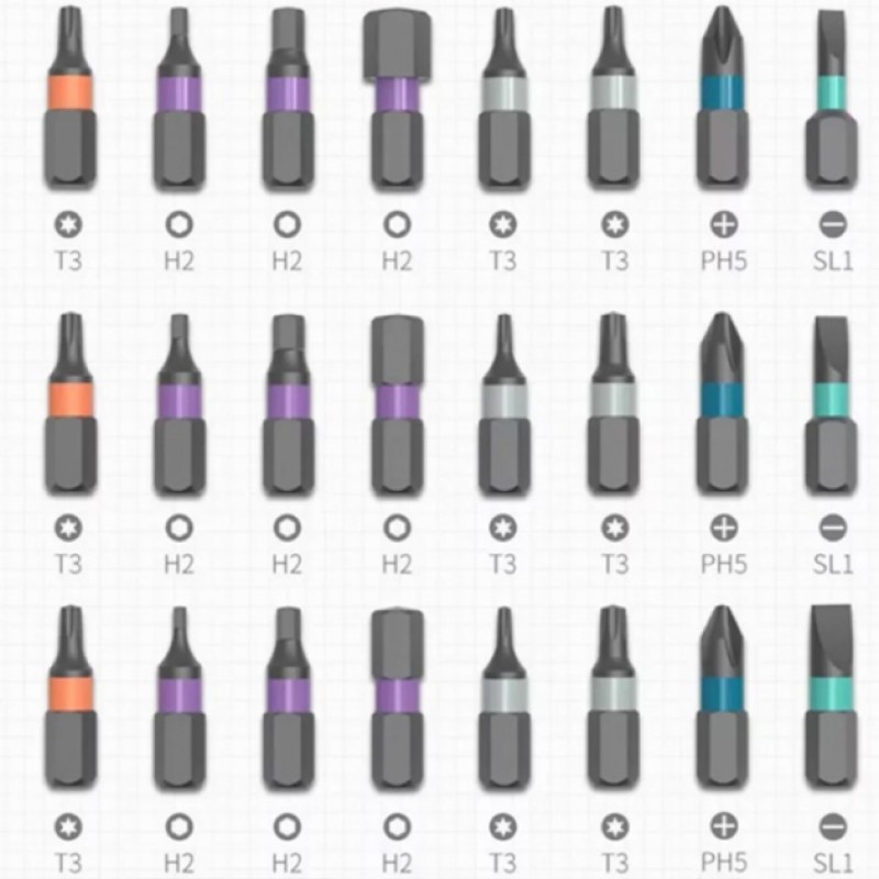 - Биты под шлиц Torx: T5, T6, T8, T10, T15, T20, T25, T27;