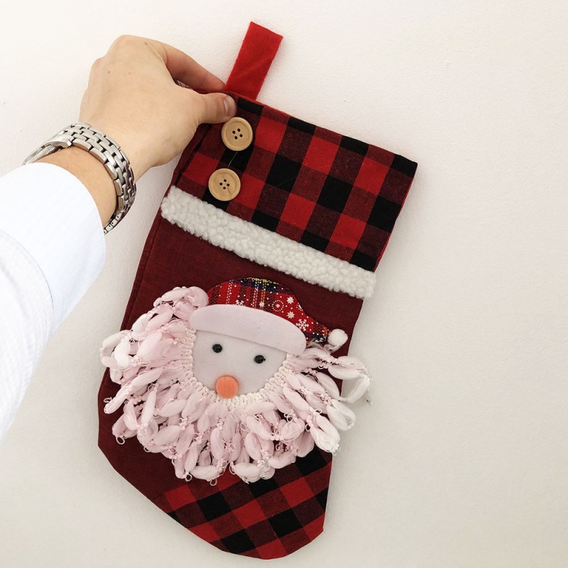Сапожок для подарков. Красный. Лицо Деда Мороза