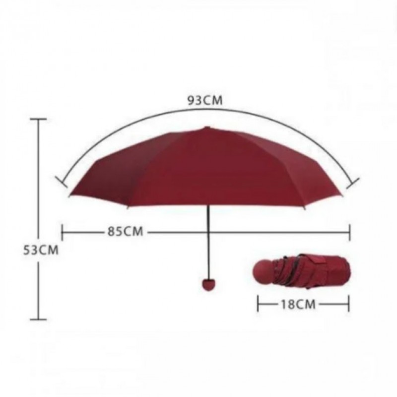 Универсальный мини-зонт в капсуле имеет компактные размеры, за счет которых прекрасно помещается в карман, сумочку, рюкзак. Главная особенность изделия — его размер. В сложенном виде он помещается на ладошке. Его длина составляет всего 17 см.